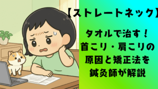 美容、健康、ダイエット【ストレートネック】タオルで治す!鍼灸師が教える簡単矯正法 首がこって辛い、肩がこって辛い、頭が重い……デスクワークが中心のあなたは、このように感じたことはありませんか?私の治療院にも患者様の半数くらいが、首・肩こりの治療に通っていらっしゃいます。その首・肩こりの大きな原因の一つが「ストレートネック... 2020.08.24美容、健康、ダイエット