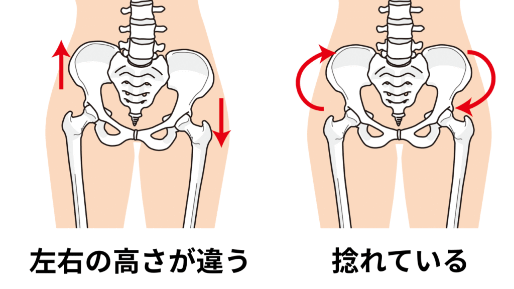 • 骨盤の位置が左右で違う